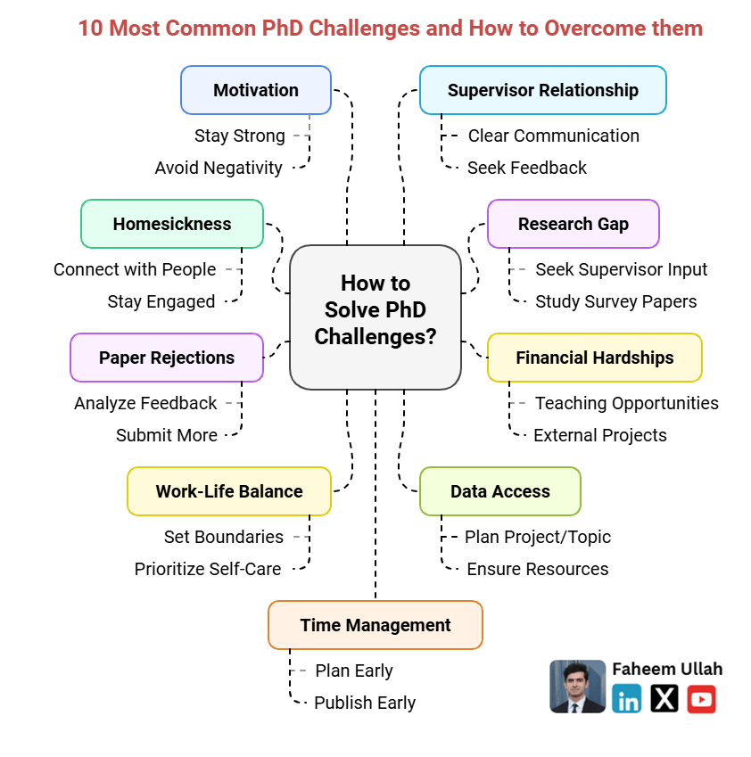 Here are 10 common challenges faced by PhD students and actionable tips to overcome them.